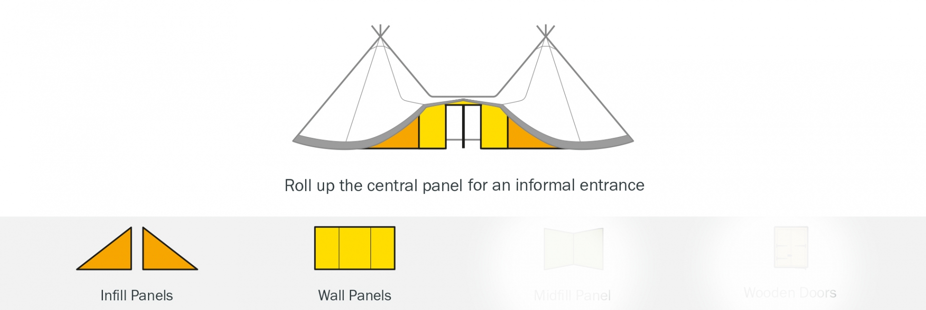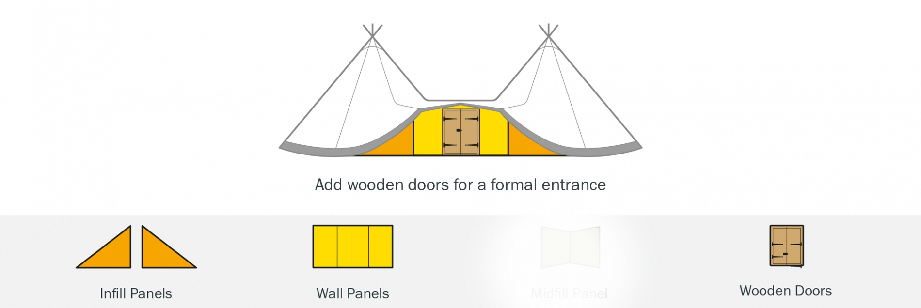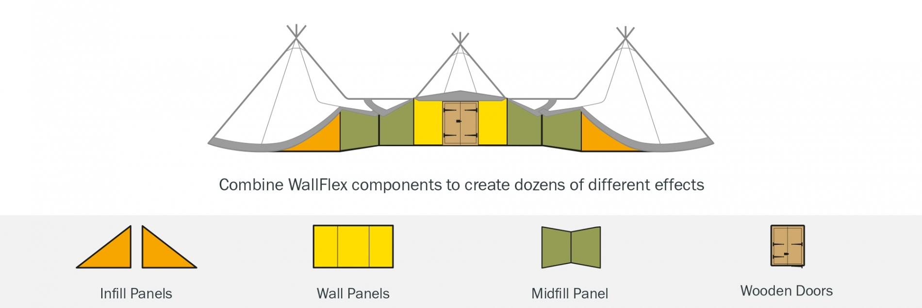 ウォールフレックスは、キャンバス地や透明な壁パネルと木製ドアを組み合わせたモジュールシステムで、耐候性を高めたり、スペースを広げたり、日当たりを良くしたりするために、何十通りもの方法で組み合わせることができます。 同じ部品を様々な方法で再利用することで、WallFlexは汎用性が高く、簡単に構築でき、投資収益率を最大化することができます。